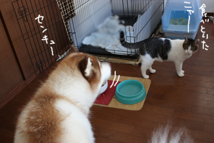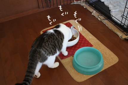 ばく(犬)の残したごはんを食べるあっちゃん・・・